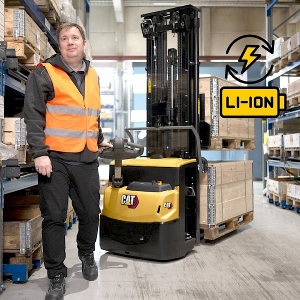 Fedezze fel a CAT NSP16N3 elektromos raklapemelő targoncát Li-ion akkumulátorral, amely kiváló energiahatékonyságot, gyors töltést és hosszú élettartamot biztosít!