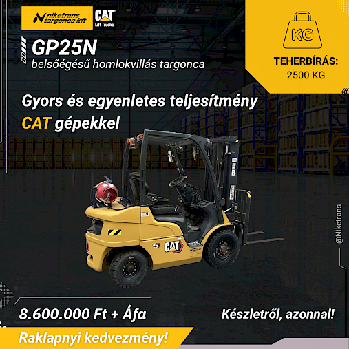 Készletkisöprő akció! CAT homlokvillás targonca a Niketrans-nál! Prémium homlokvillás tagonca, kiváló áron!