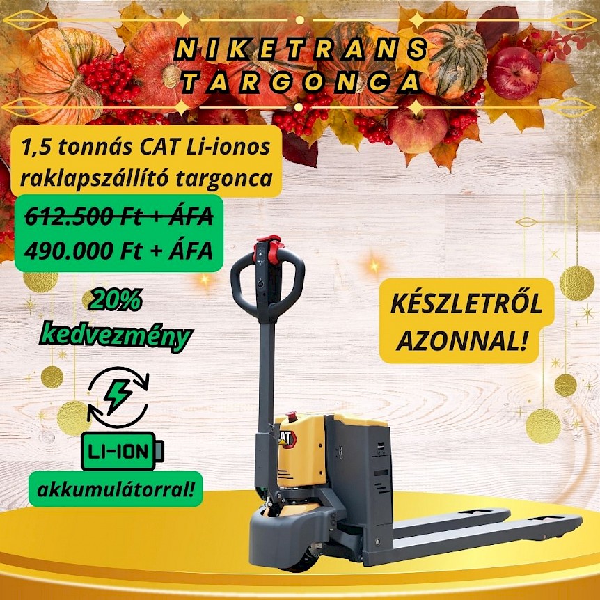 Novemberi rakodási lendület! CAT Elektromos raklapszállító targonca 490.000 Ft+ÁFA!